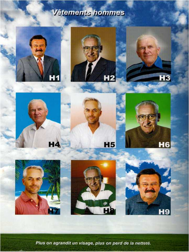 Le catalogue permet à vos clients de choisir la porcelaine, le fond (paysager ou couleur) et les vêtements à changer éventuellement.